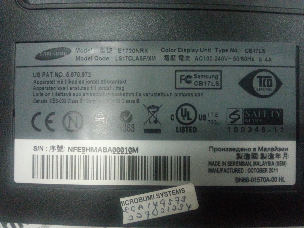 Repair SYNC MASTER E1720/E1720NRX SAMSUNG SAMSUNG in Malaysia, Singapore, Thailand, Indonesia